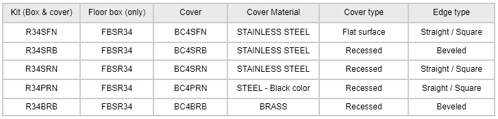 The R34 is supplied as a kit which includes the box and the cover of your choice. The Kit number or part number (for the kit) is
